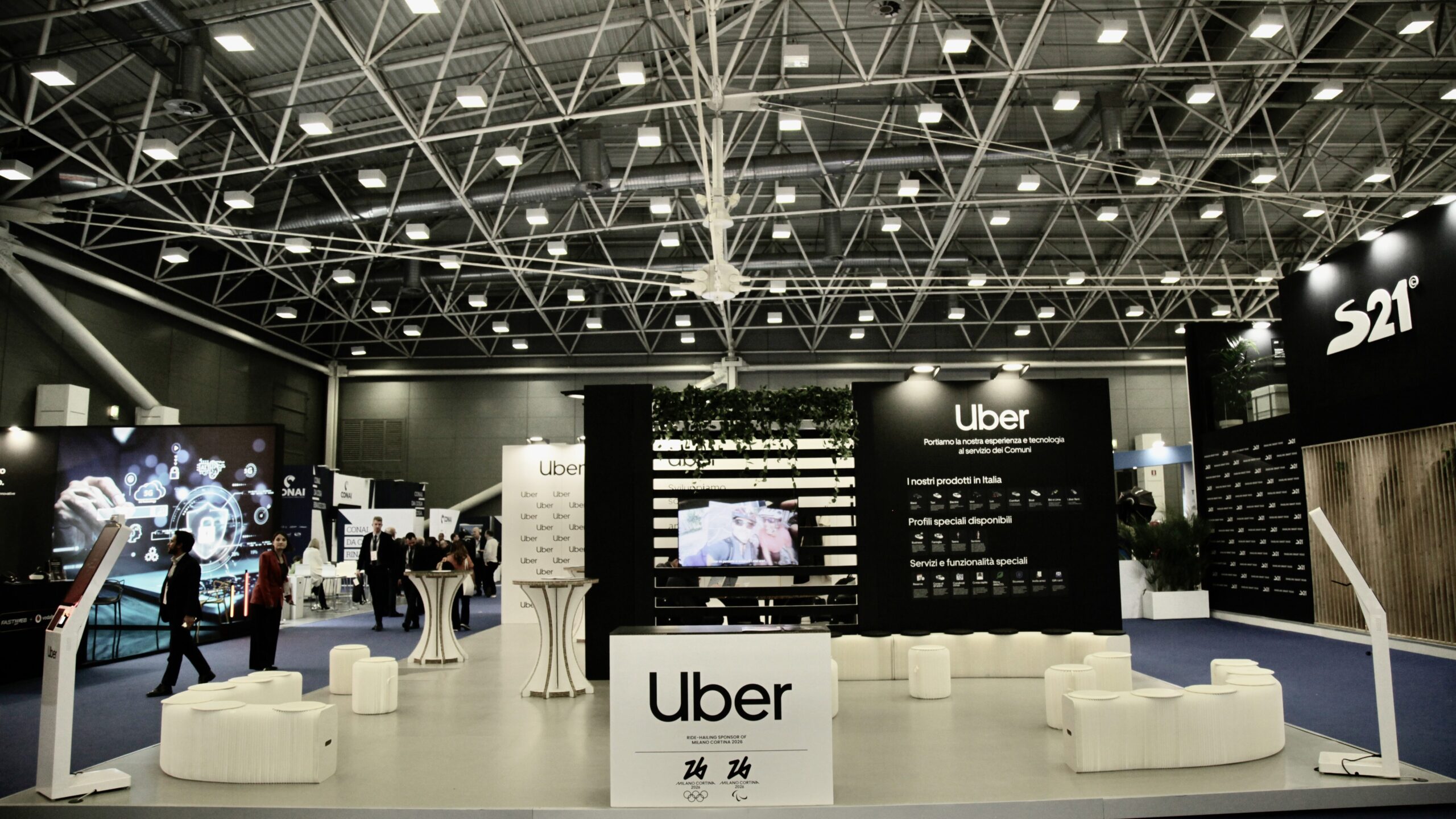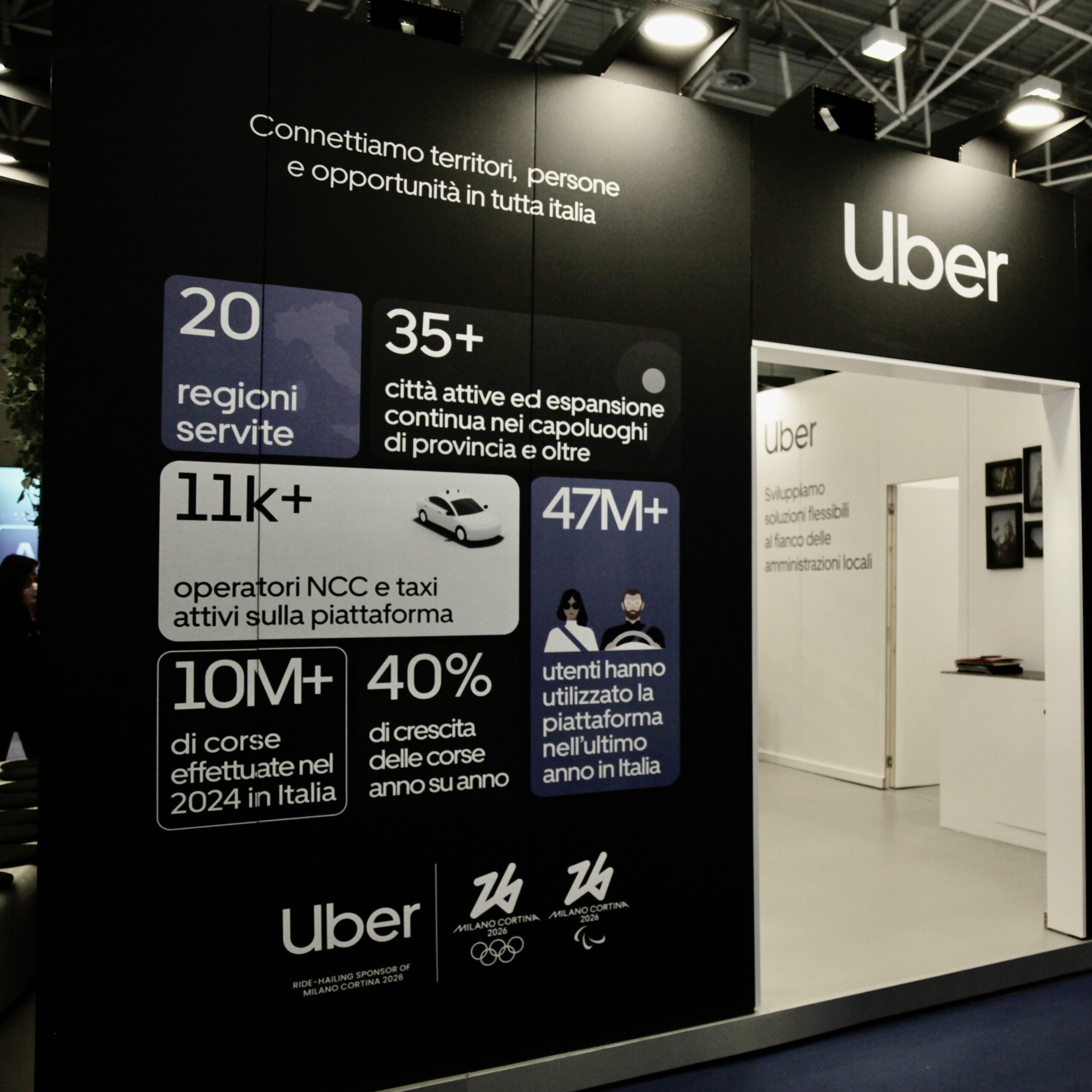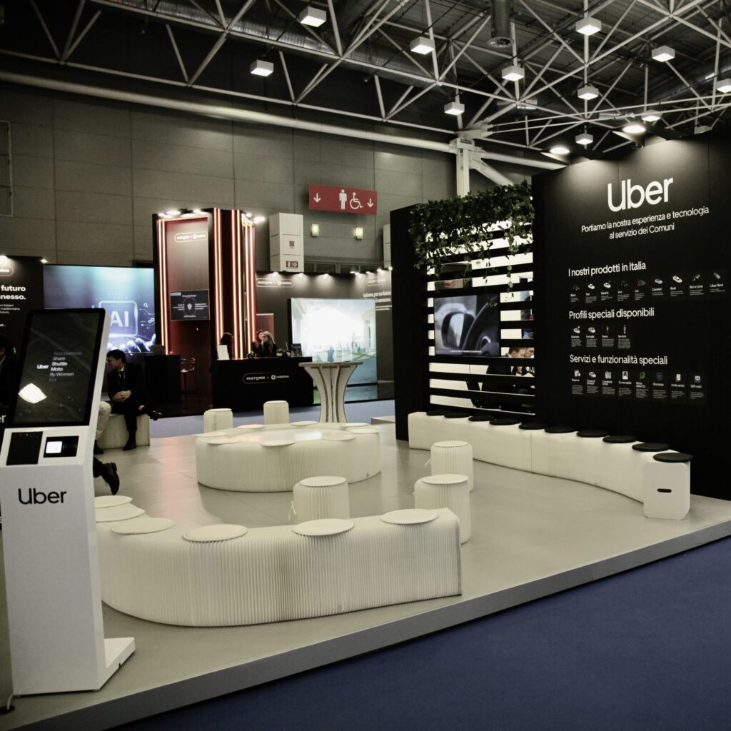 Lo spazio è pensato come un punto di incontro: un luogo in cui scoprire i servizi Uber legati al territorio e comprendere, attraverso sistemi digitali dedicati, come questi possano generare valore per i Comuni e le comunità italiane.