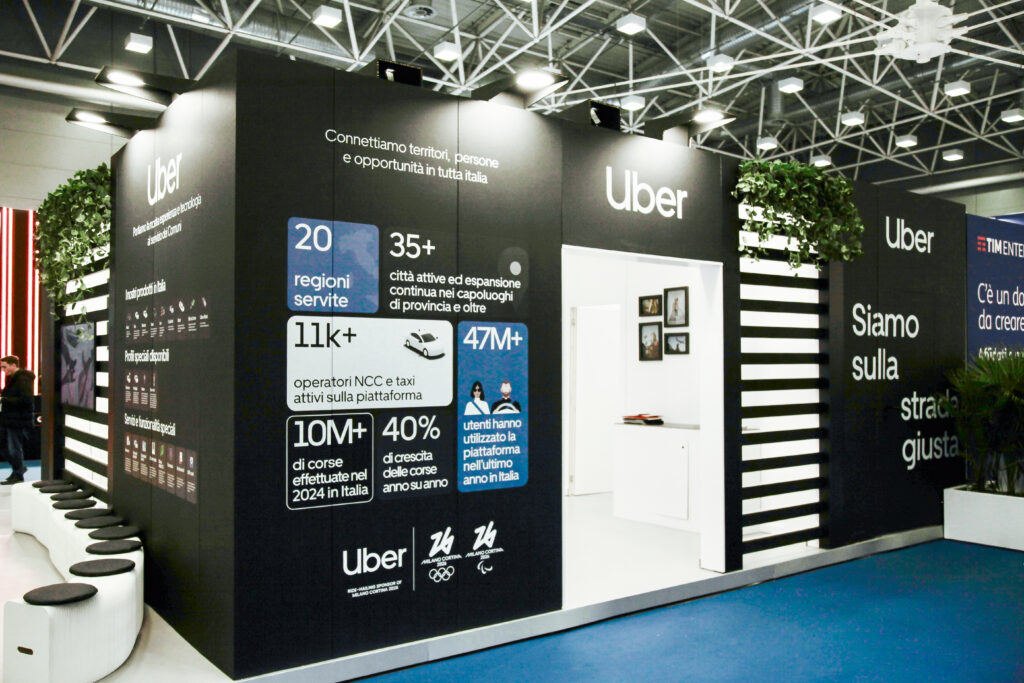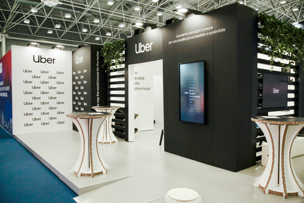 Innovazione e riduzione dell’impatto ambientale convivono nei totem interattivi progettati come luogo d’incontro con i servizi Uber diffusi nel territorio italiano.