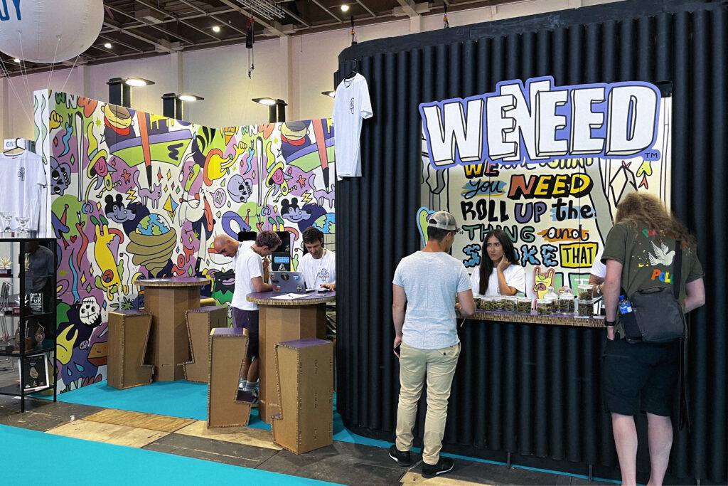 Lo stand definisce lo spazio con materiali sostenibili