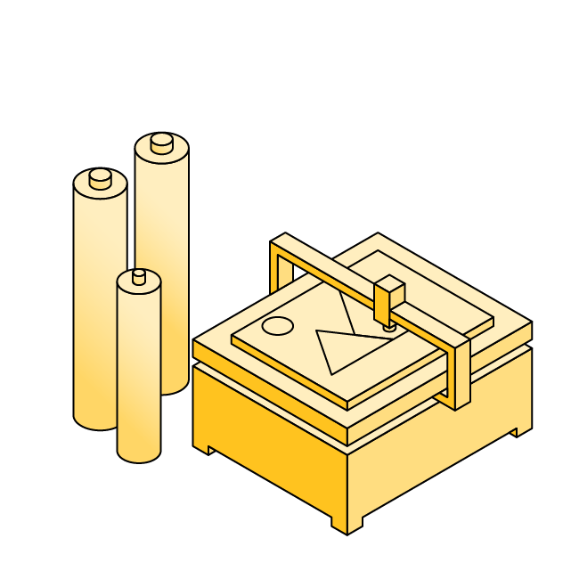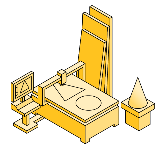 Lavorazione dei materiali attraverso macchinari a controllo numerico.